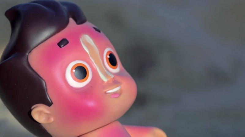N’est-elle pas mignonne cette jolie poupée ? Mignonne ou pas, la particularité de cette poupée est qu’elle prend des coups de soleil. Elle est faite dans un matériau sensible aux rayons UV, il faut donc lui appliquer de la crème pour lui éviter de devenir toute rouge comme Papa quand il s’endort au soleil. Cette campagne de prévention est destinée aux enfants pour les sensibiliser aux dangers du soleil et pour leur apprendre le réflexe de la crème solaire. Et puis, quand ils auront fini de tartiner leur poupée, ils pourront mettre de la crème dans le dos de Papa et Maman. Merci NIVEA 🙂